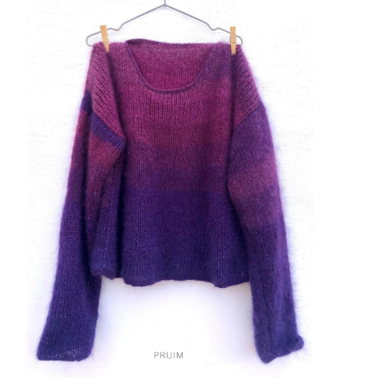 New to the Frances VH Mohair catalogue, the Landscape Knit Jersey is a bulky sweater, knitted with a triple yarn of kid mohair & mulberry silk. Duck Duck Goose is the first retailer to stock the jersey, after the Frances VH Mohair team spent 3 months developing and making the product, with one knitter dedicated to the project. The jersey has an satisfying weight, due to the quality and quantity of material used, originating from Frances’ Karoo studio. The jersey’s colour features an ombré effect with different hues of purple.