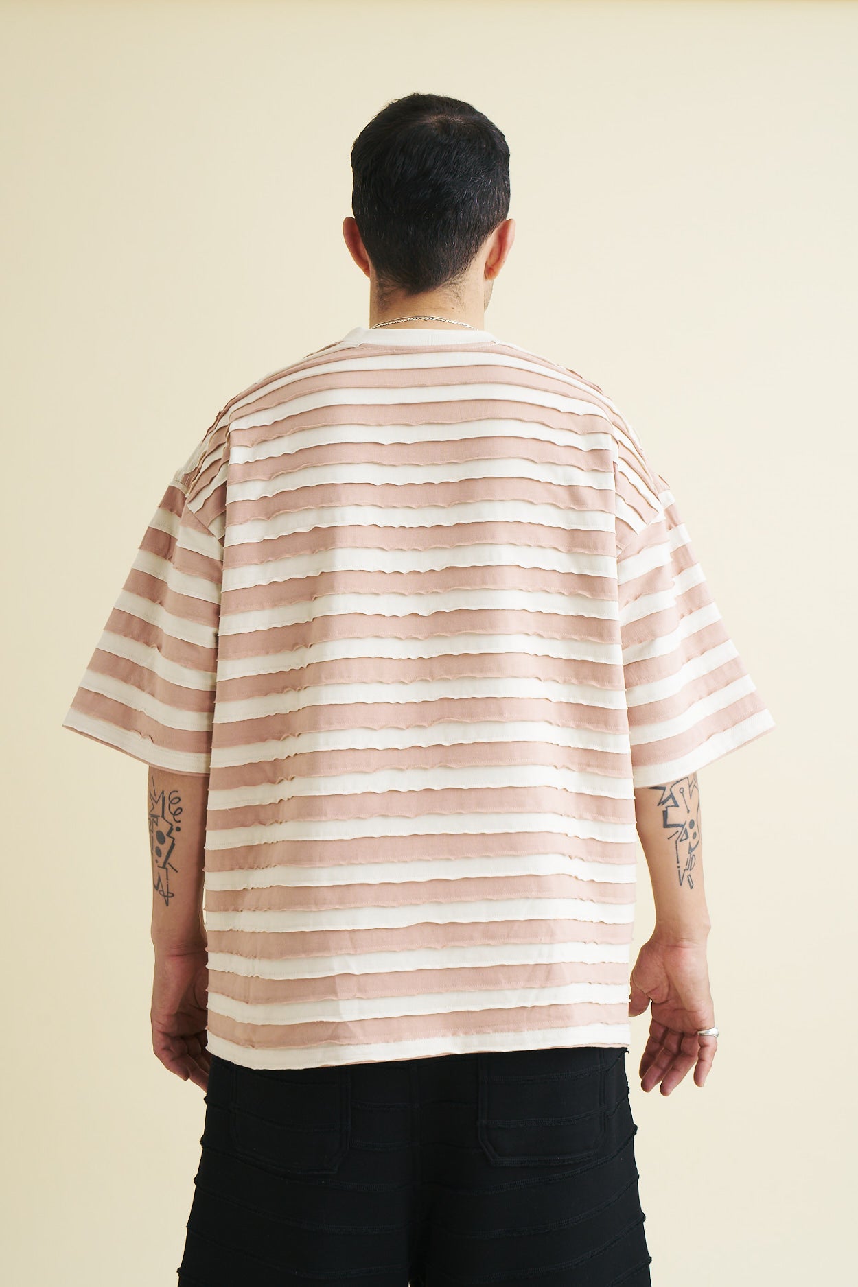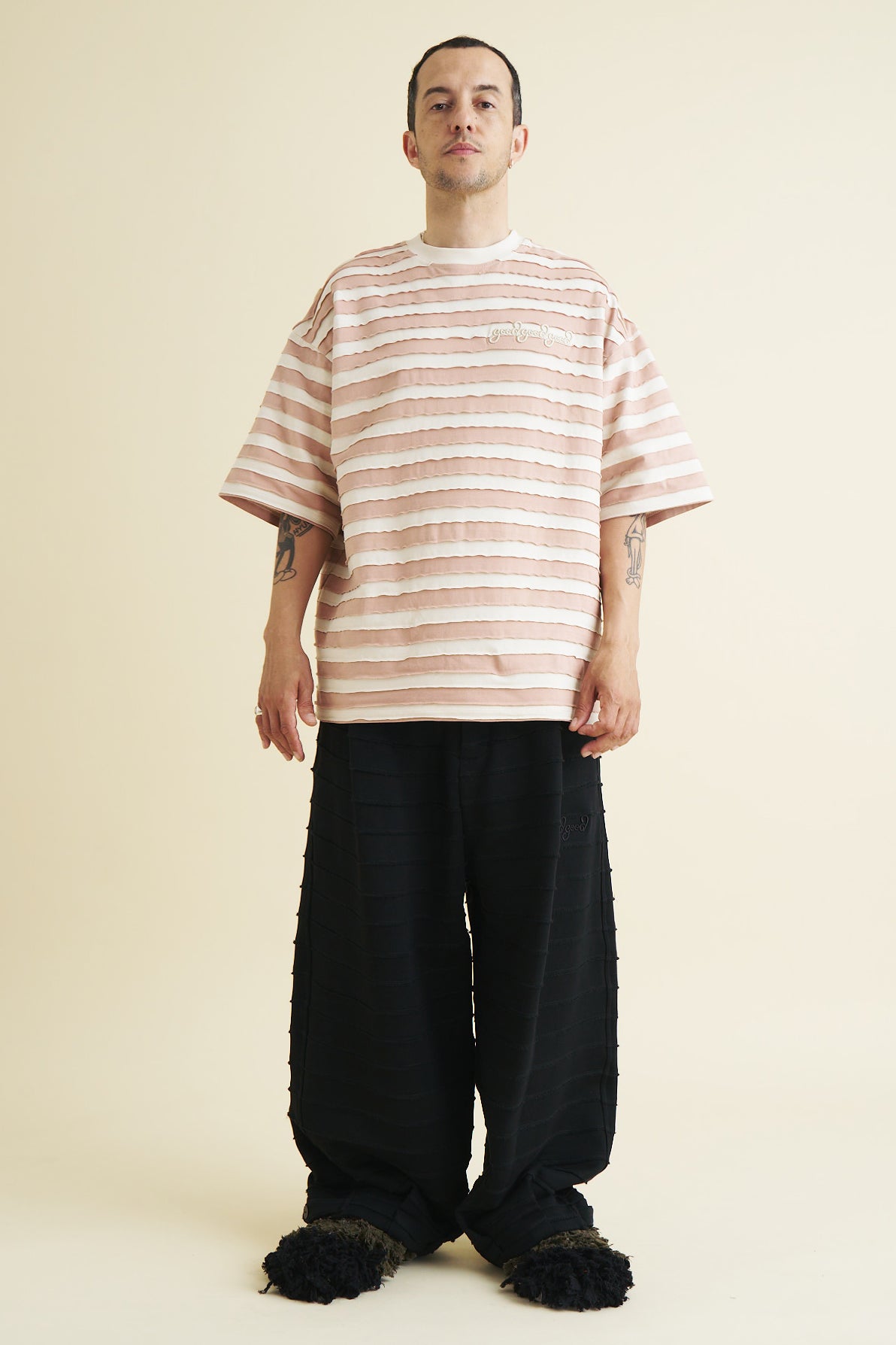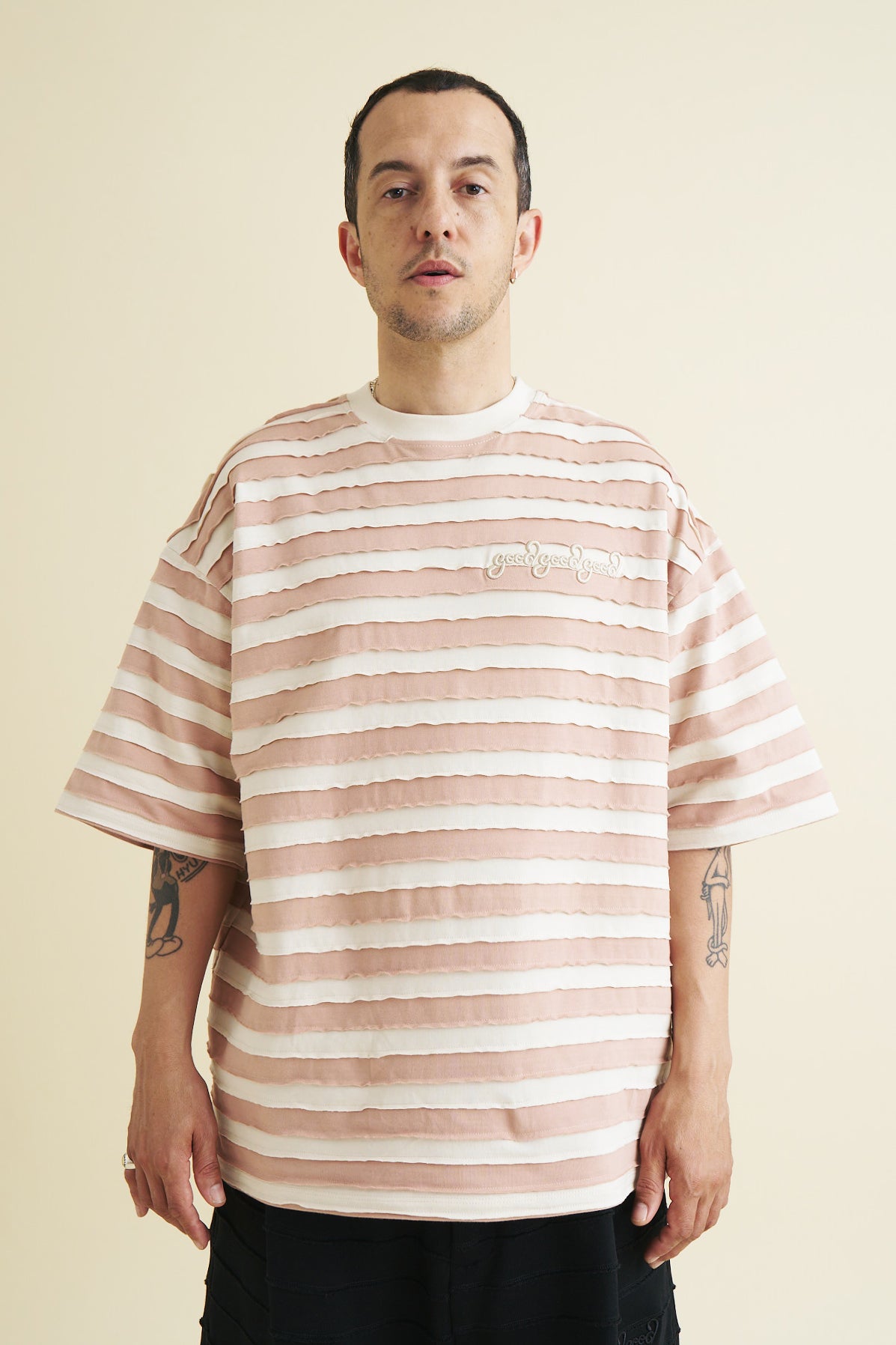The Strip-Stripe T-Shirt is Good Good Good’s newest solution that they have developed to work with the offcuts produced from the regular T-shirt production runs at their 30-year-old heritage manufacturing facility in Woodstock, Cape Town. The manufacturing process behind this T-shirt is arduous. With meticulous attention to detail, offcuts are selected by hand and cut down to strips. Strips need to be sewn together two at a time, then ironed straight, before being added to the rest of the strips. Eventually, the sheet of Strip-Stripe fabric is large enough to cut the panels of the T-shirt from.