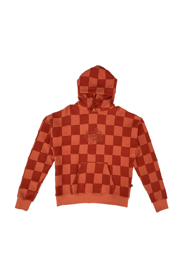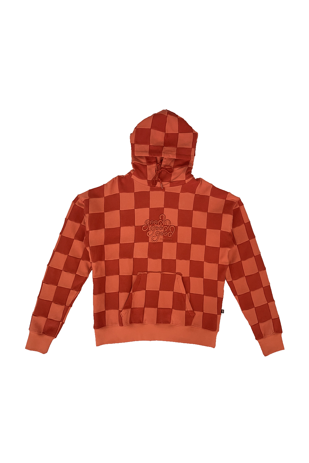 Checkered Patchwork Hoodie – Rust & Tangerine