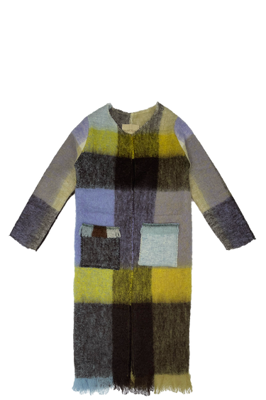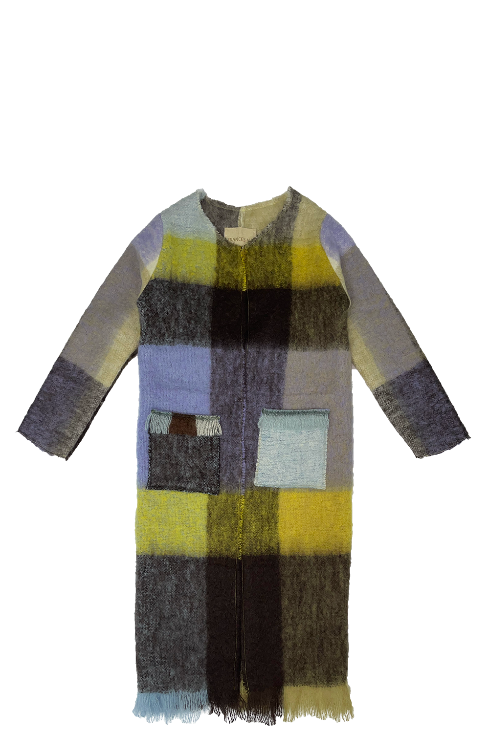 This 100% mohair coat, made by Frances van Hasselt and her studio team in the small Karoo town of Prince Albert, is a part of Frances V.H Mohair’s SOFA (Supporting Old Factories in Africa) Collection. The SOFA Collection works with iconic African mohair factories to create new imaginings around locally produced mohair products. Made from end of the run mohair yarn stock, this collection is made up of small units in limited edition colourways. This differentiates the SOFA Collection from the brand’s other offerings, where the mohair is self-sourced, washed and dyed in-house by Frances and her team – handmade from start to finish. Frances V.H Mohair believes in sustainable processes, working with what already exists, and creating unique, timeless pieces which bring warmth, comfort and a connection to nature into homes and wardrobes. This is what prompted the SOFA Collection.