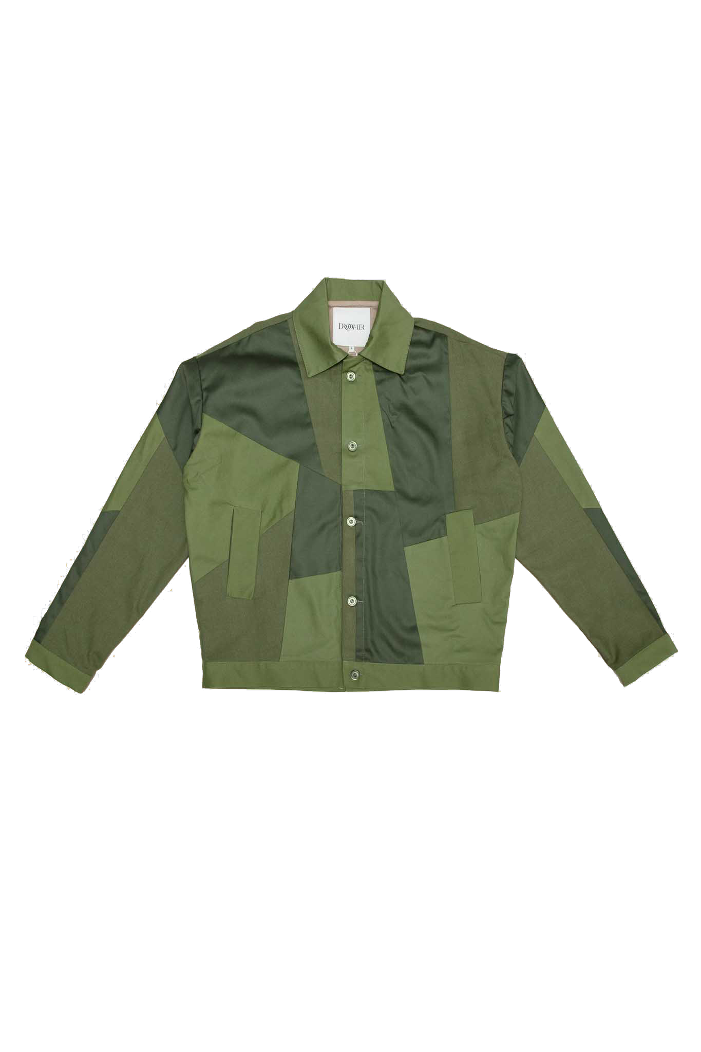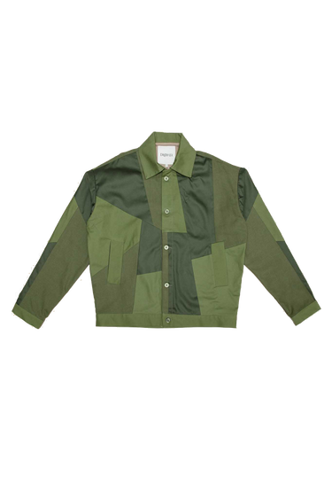 The Mosaic Harrington Jacket is made up of three different 100% cotton textiles. The jacket has a classic Harrington-style shape with two pockets on either side of a full zip closure down the middle of the front. Cleo Droomer is a South African designer who works exclusively with offcuts and waste materials from the local textile and manufacturing industries. Garments like this mosaic style jacket have won him awards such as the Twyg Changemaker Award in 2022.
