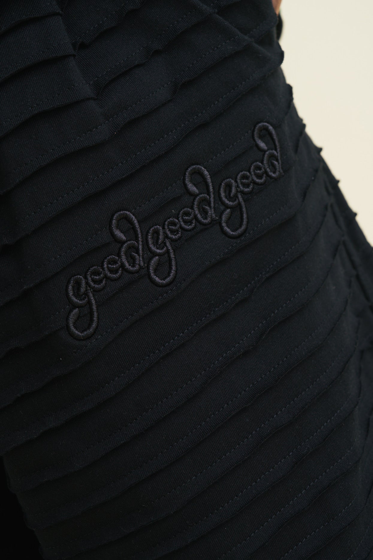 The Strip-Stripe Drawstring Shorts form part of Good Good Good’s Strip-Stripe Capsule, the brand’s newest solution that they have developed to work with the offcuts produced from the regular T-shirt production runs at their 28-year-old heritage manufacturing facility in Woodstock, Cape Town. This patchwork short is made from 100% Southern African-sourced cotton single jersey strips, cut from offcuts and deadstock fabric from their factory floor.