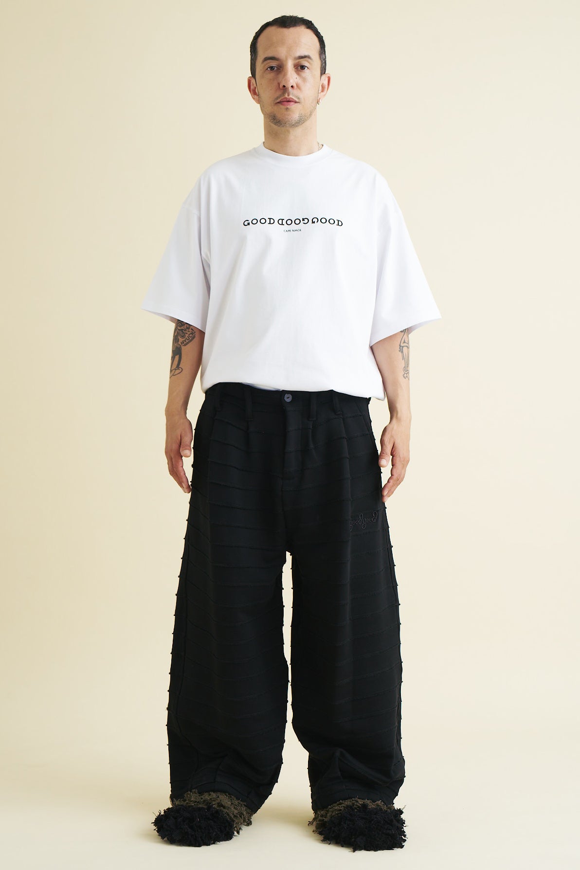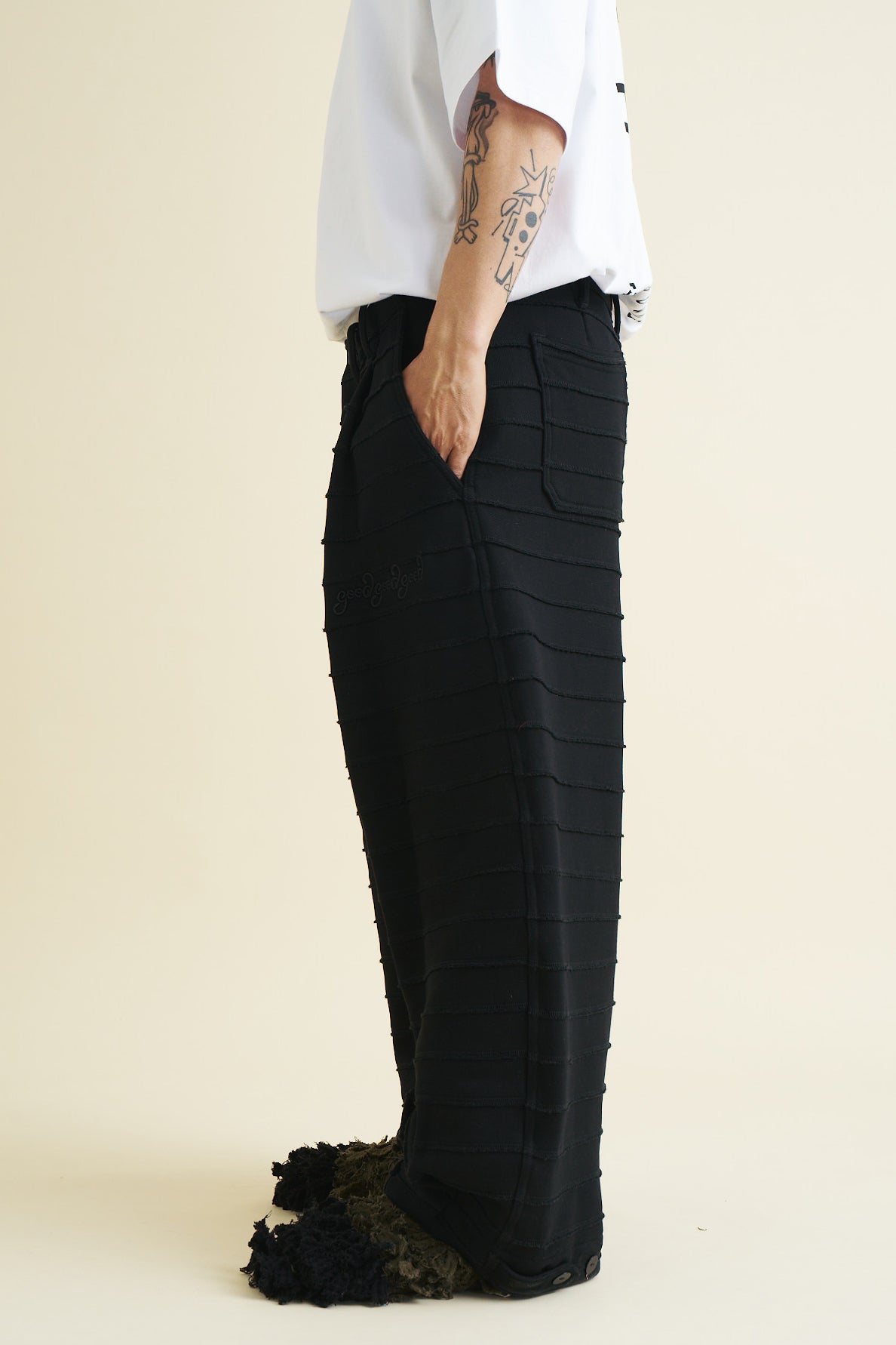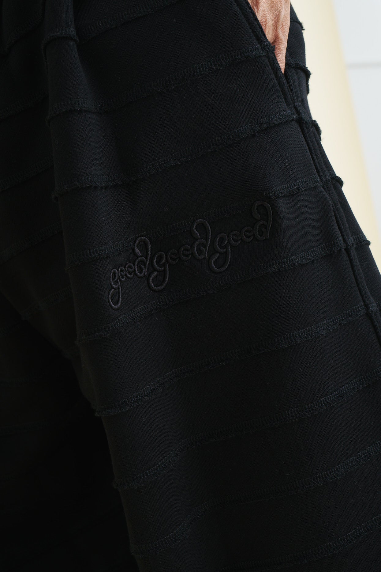 - Embroidered Good Good Good logo on the left leg