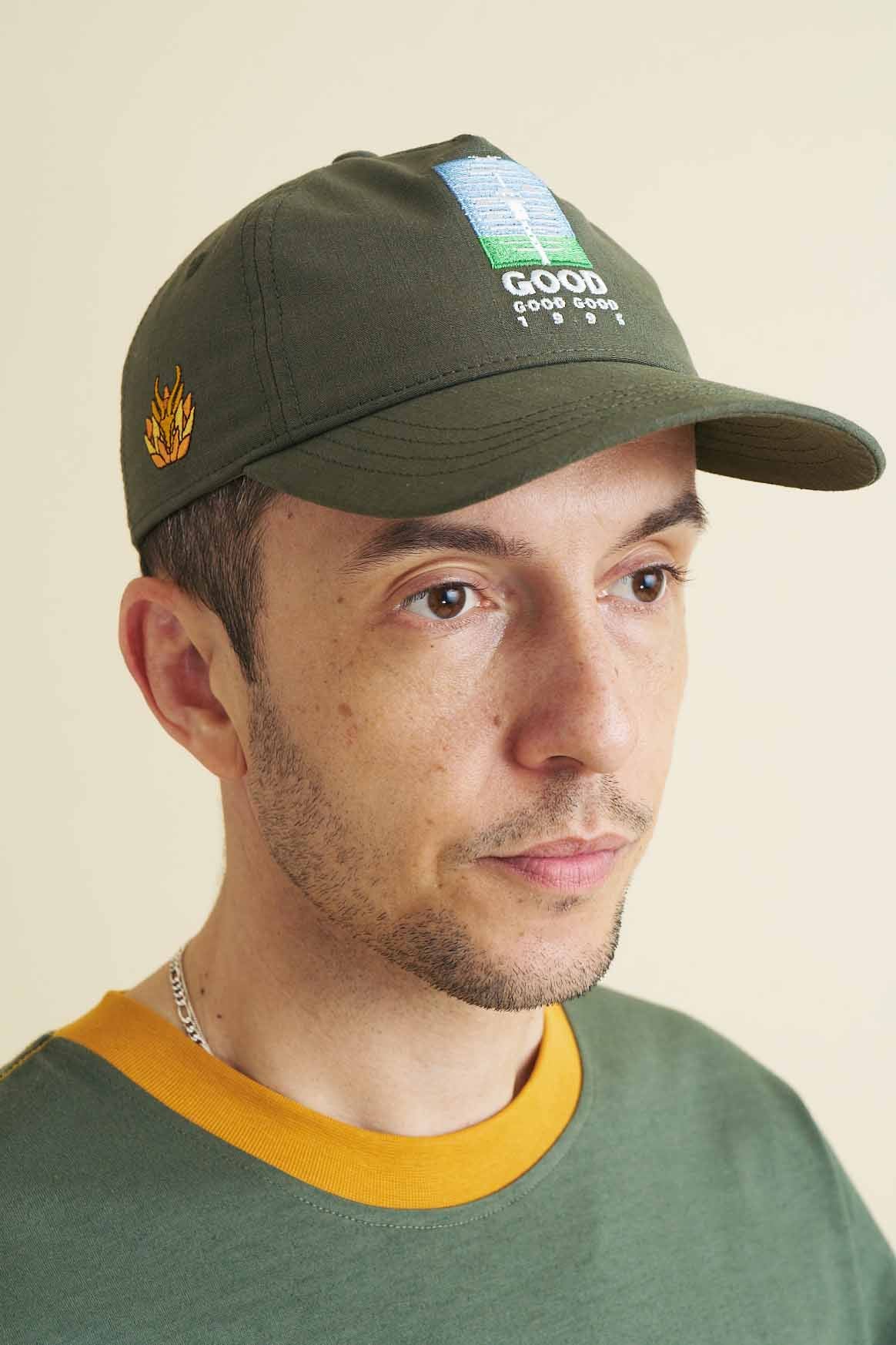 This cap forms part of Good Good Good’s ‘Unsung Heroes’ Capsule Collection, which pays tribute to the Springboks’ 1995 Rugby World Cup victory, and features embroideries of Good Good Good’s RWC logo on the front and Francois Pienaar’s number 6 and a springbok-inspired emblem on the sides, all illustrated by Yay Abe.