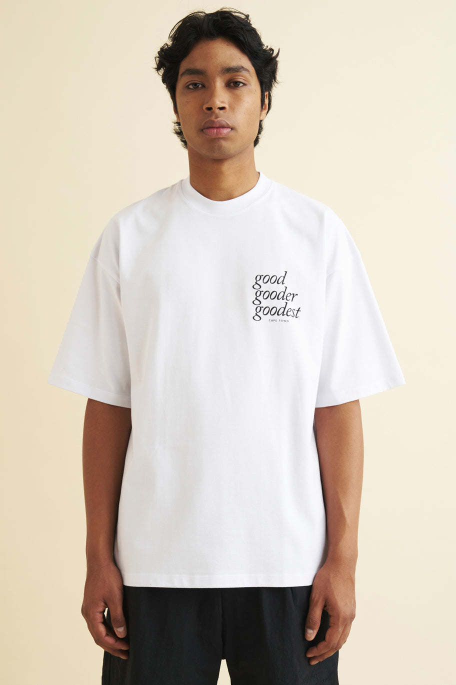 This iteration of the Heavy T-Shirt features our Good Gooder Goodest Logo, screen-printed on the left chest.