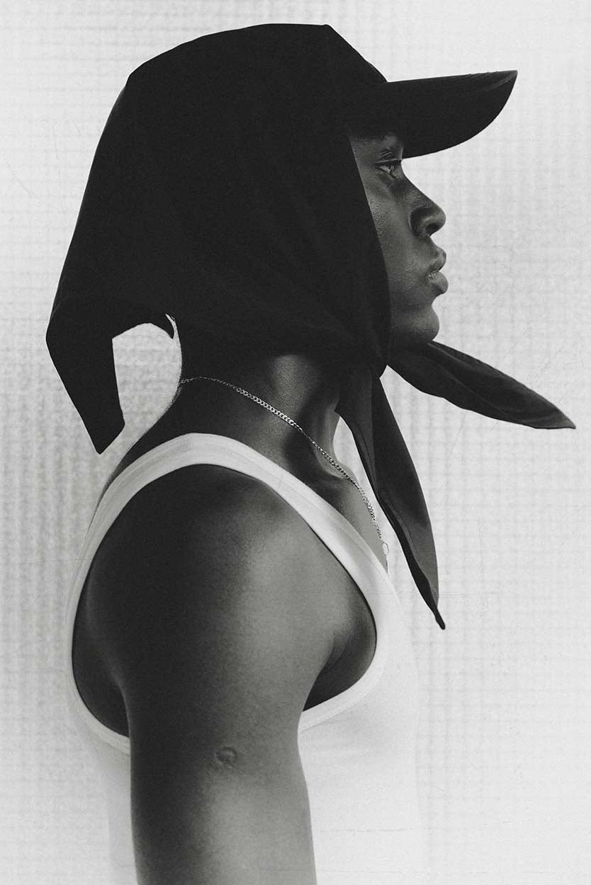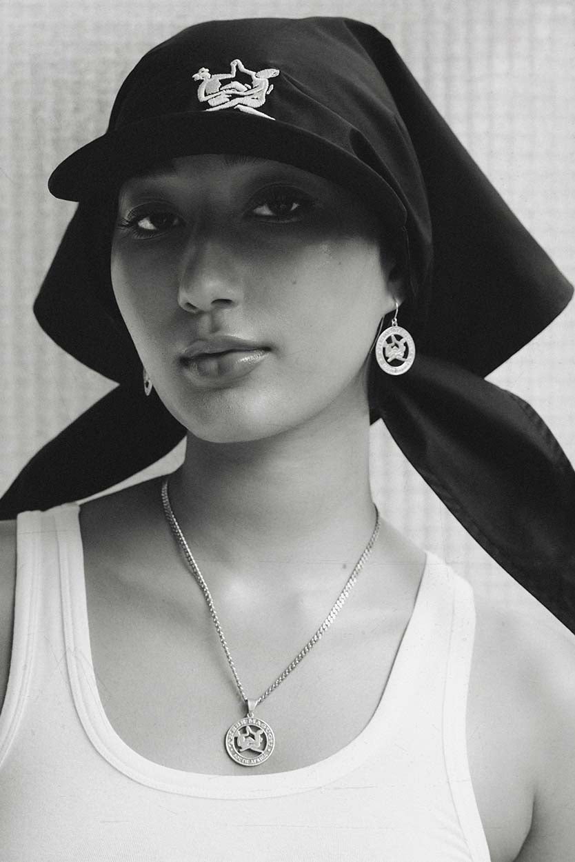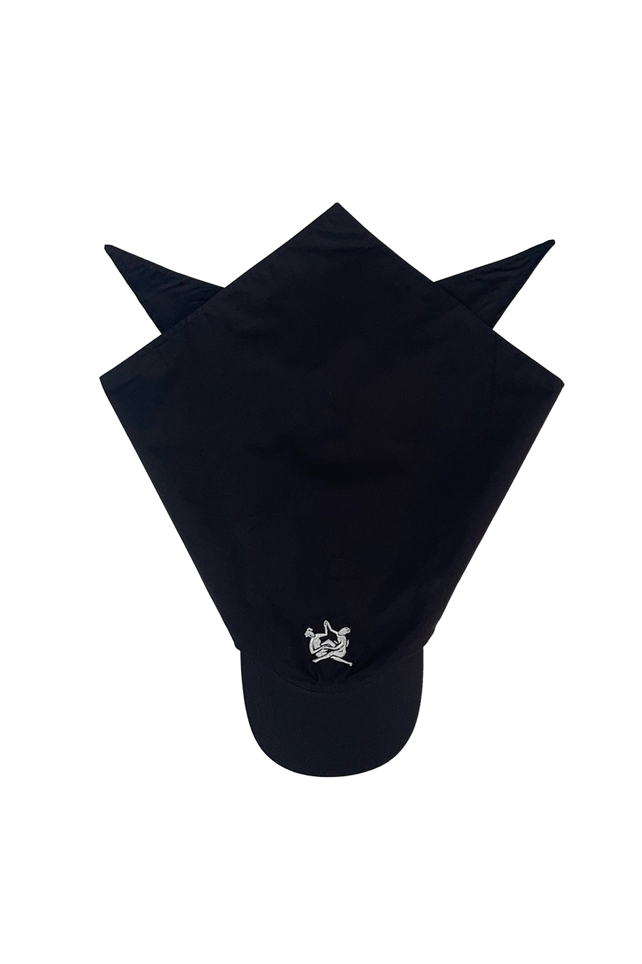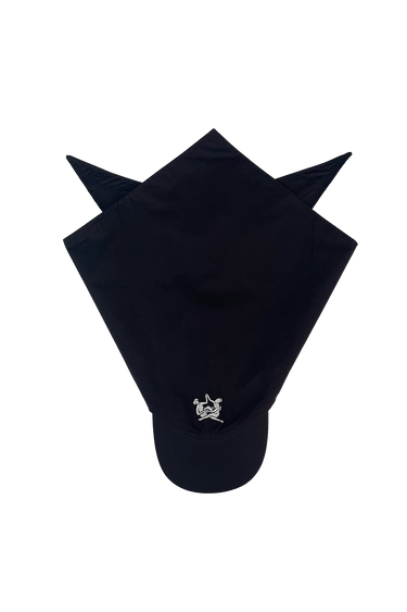 The Sisterhood Kite is a unique cap, comprising part cap bill and part triangular scarf, forming a summer-ready and street-savvy headscarf.