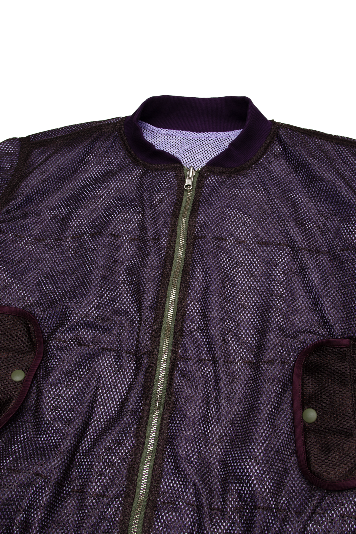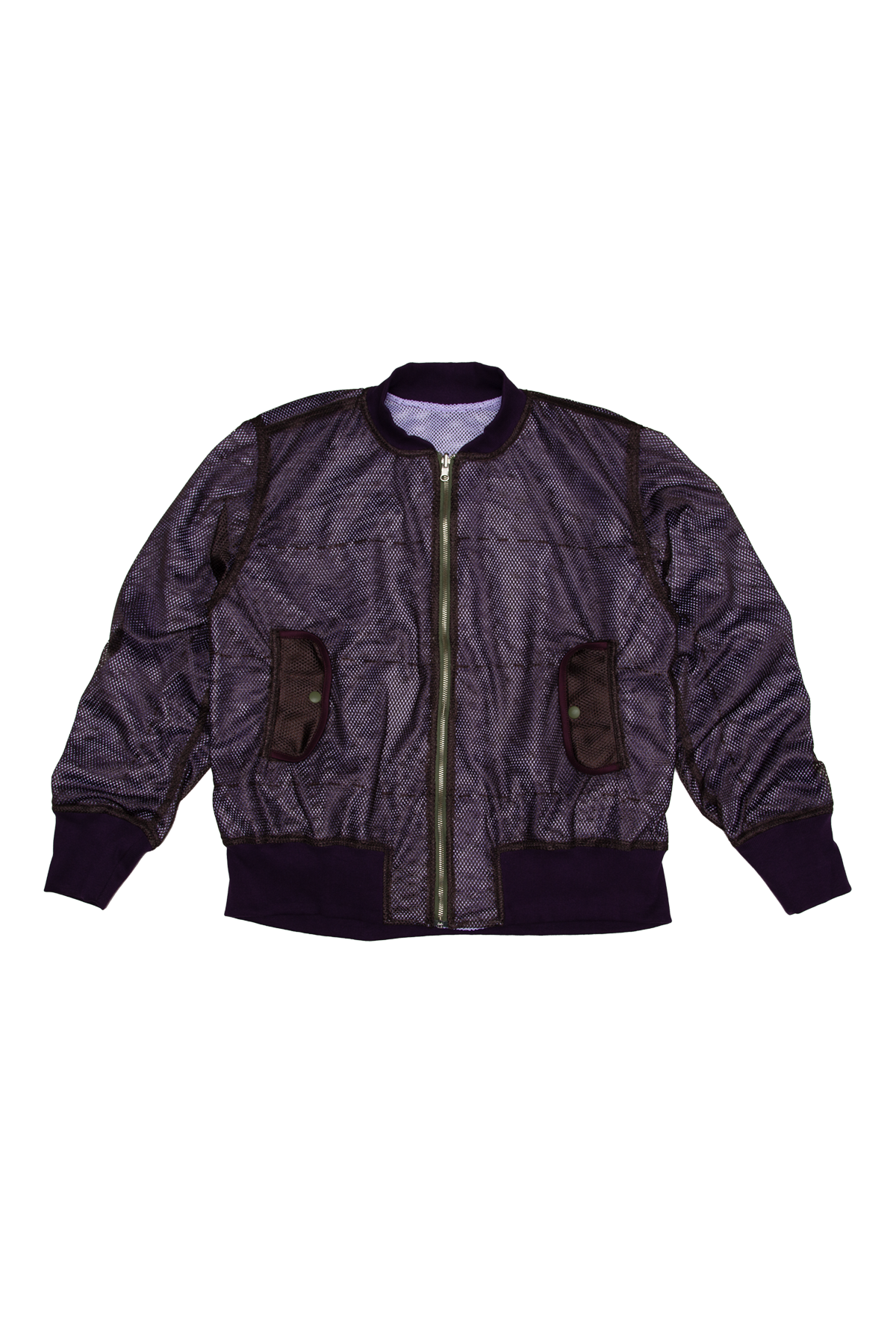 Multi-Layer Mesh Bomber Jacket — Brown/Purple
