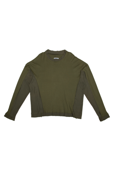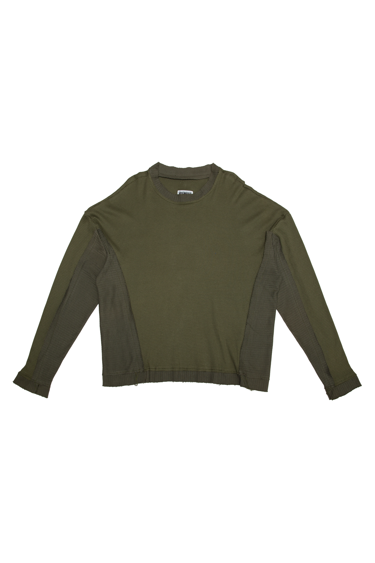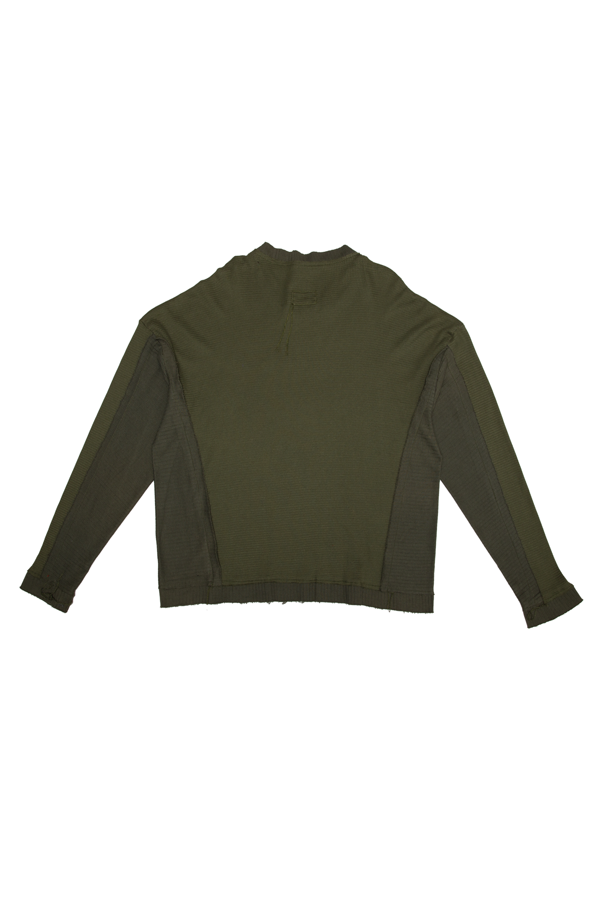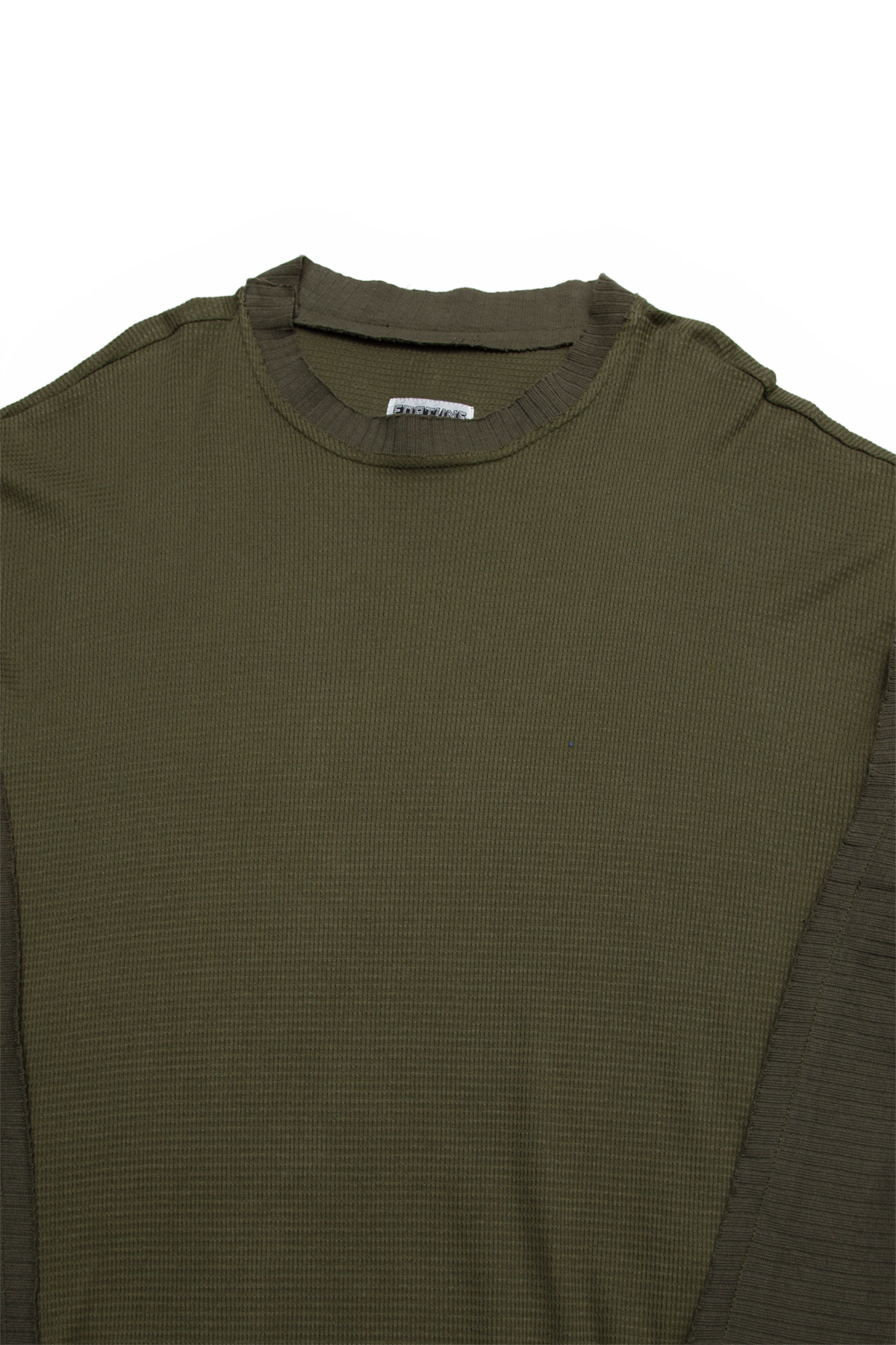 Multi-Panel Waffle Long-Sleeve T-Shirt — Olive