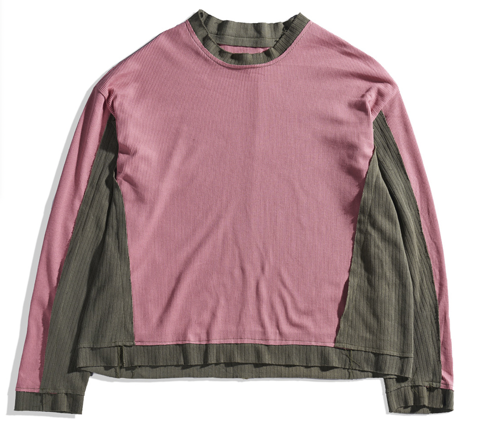 Multi-Panel Waffle Long-Sleeve T-Shirt — Pink