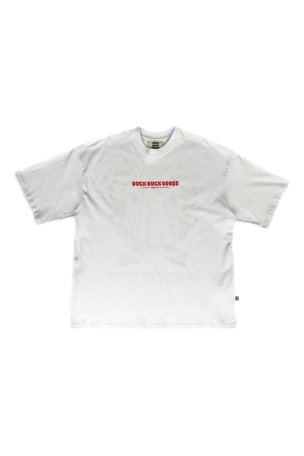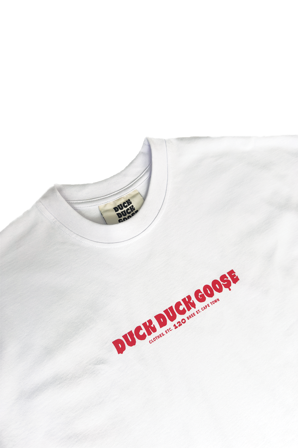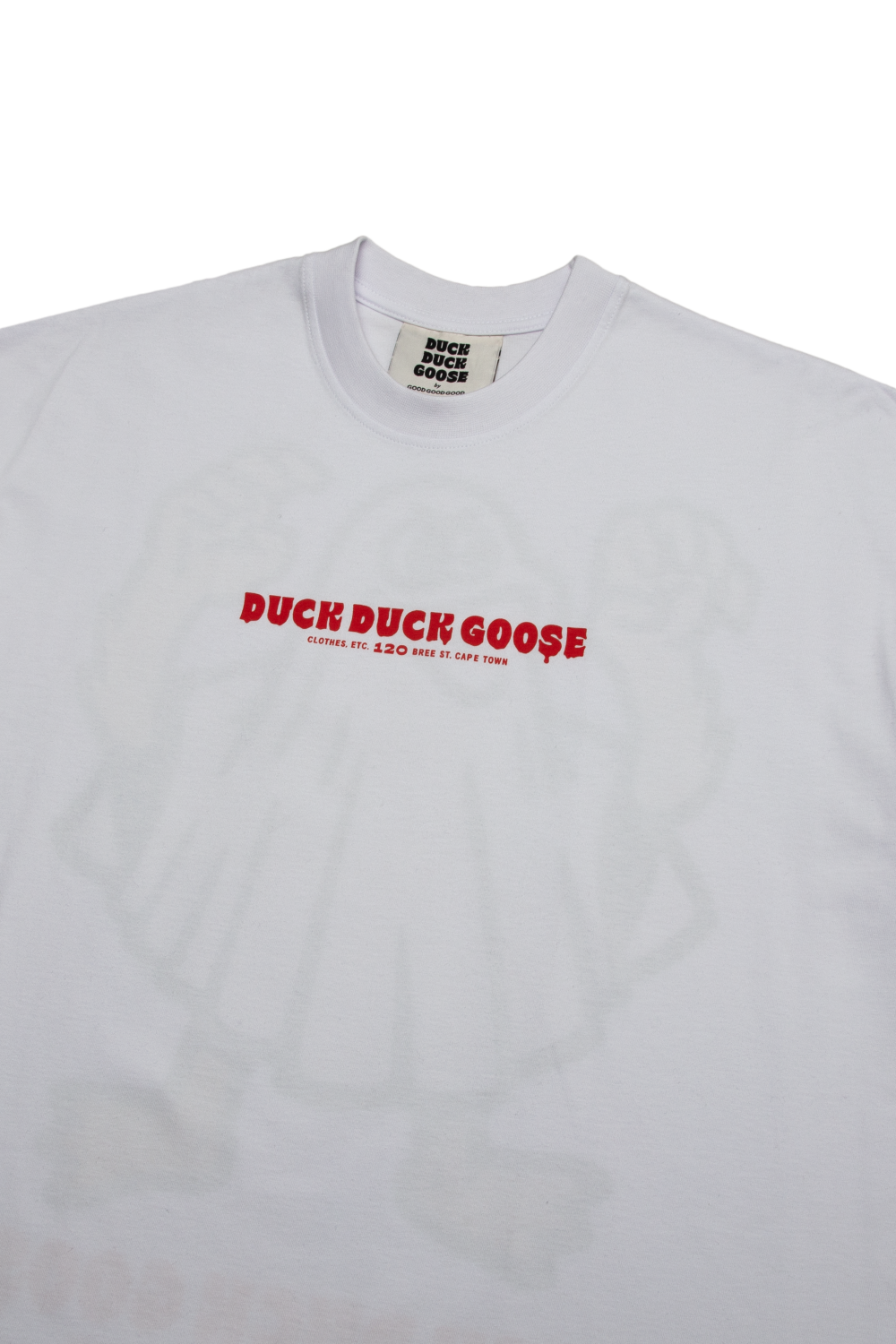 The Spoek Duck T-Shirt is Duck Duck Goose’s first ever Halloween-themed T-shirt. This Halloween, our duck’s gone for the old sheet over the head trick, illustrated by Shaun Hill. To make it real spooky, we’ve screen-printed the sheet in glow-in-the-dark ink on the back of the tee. The front of the T-shirt features our wordmark logo screen-printed in a limited edition droopy blood typeface.