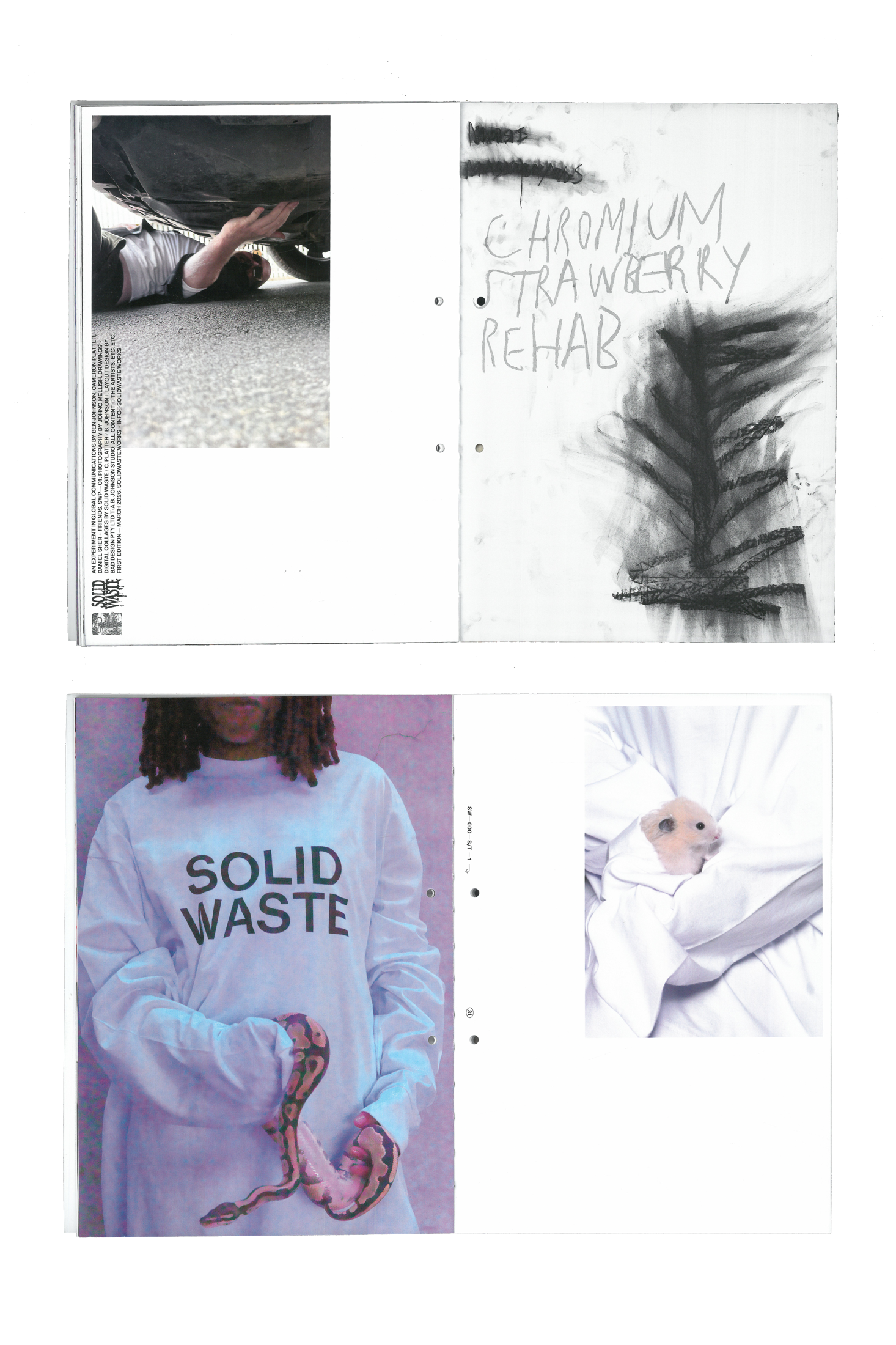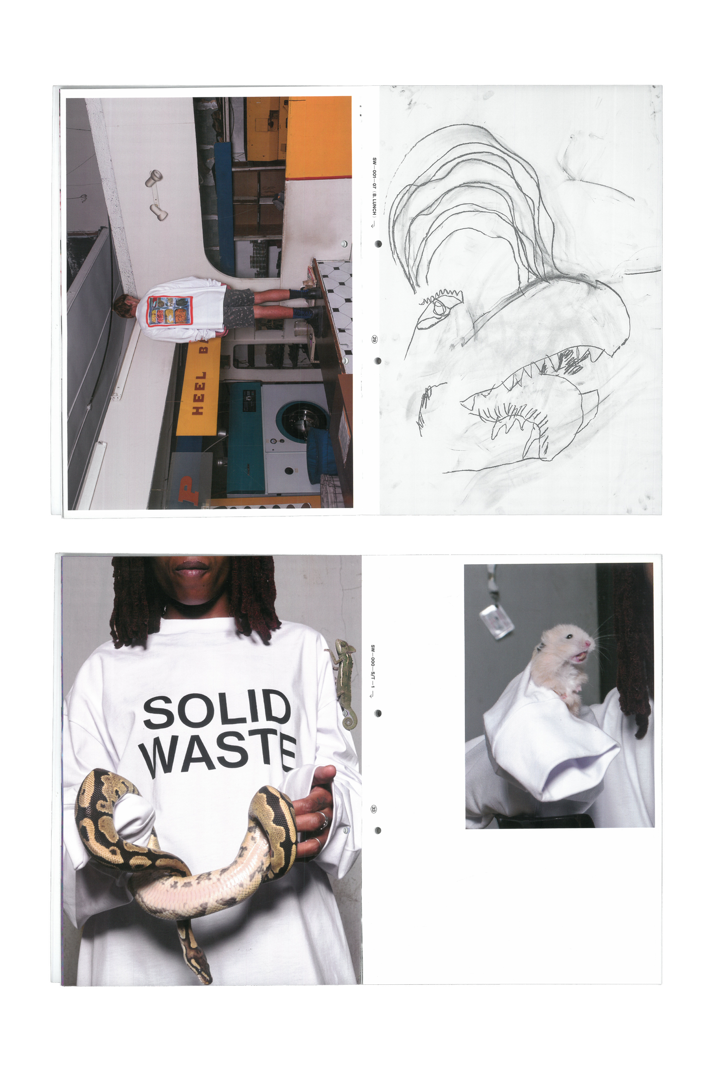 This SOLID WASTE zine consists of the brand’s lookbook for its SW-001 collection of T-shirts. The lookbook was photographed in Brakpan, Johannesburg by Johno Mellish. The zine also features artworks by Ben Johnson & Cameron Platter.