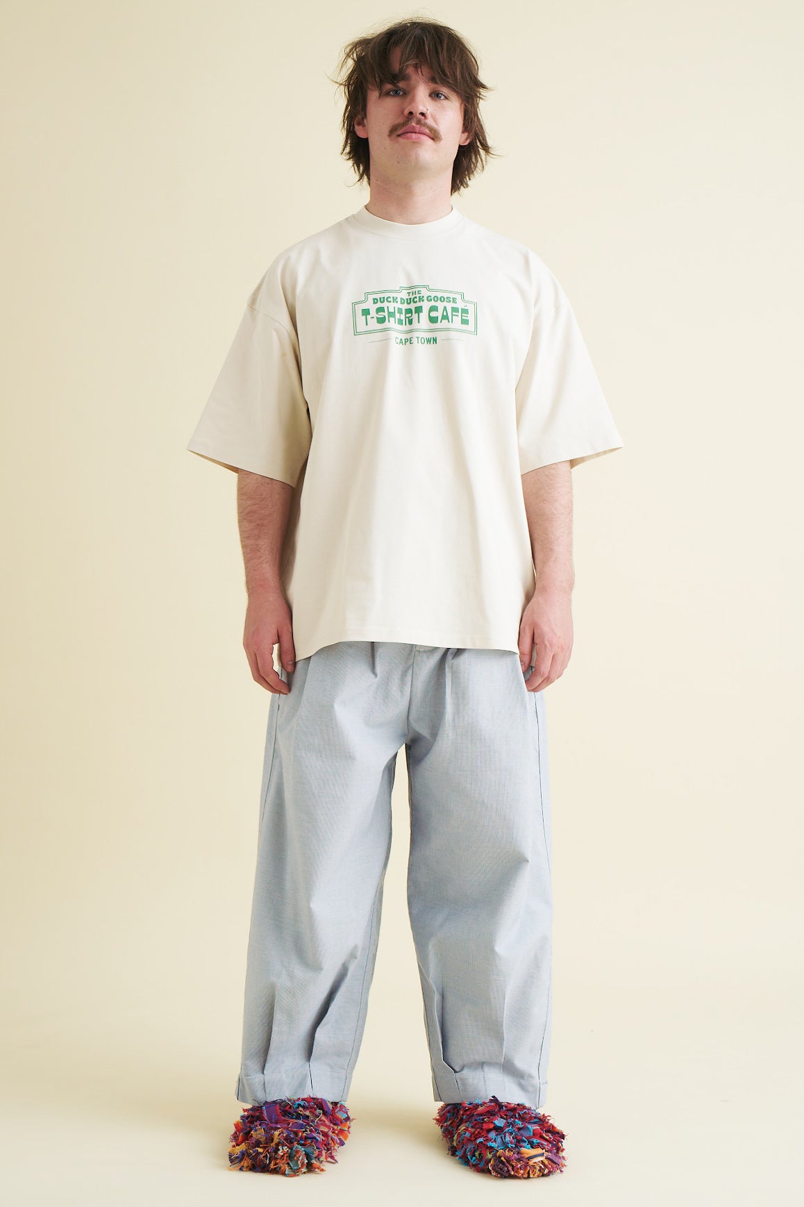 Each T-shirt is made in our 30-year-old heritage manufacturing facility in Woodstock, Cape Town, and delivered fresh and warm to the Duck Duck Goose T-Shirt Café.